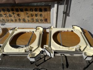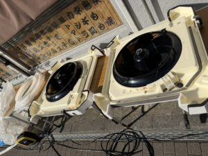 店内で炭火焼き鳥を行っていたり、揚げ物の調理が多いためエアコンも油煙を吸って