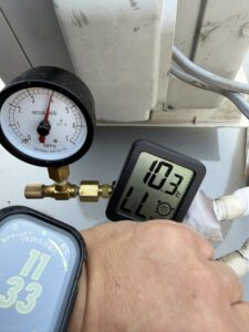 翌日確認に伺い、圧力変化はなかったので今回は隠蔽配管は問題ないと判断できました。