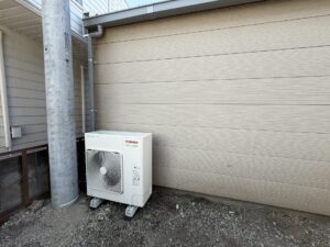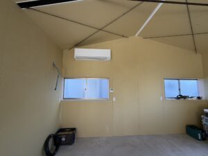 木工製品加工場の新築倉庫に業務用エアコンを取付しました。